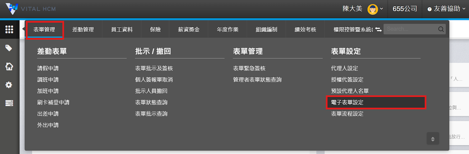 1. 請至【全站功能】>【表單管理>電子表單設定】。