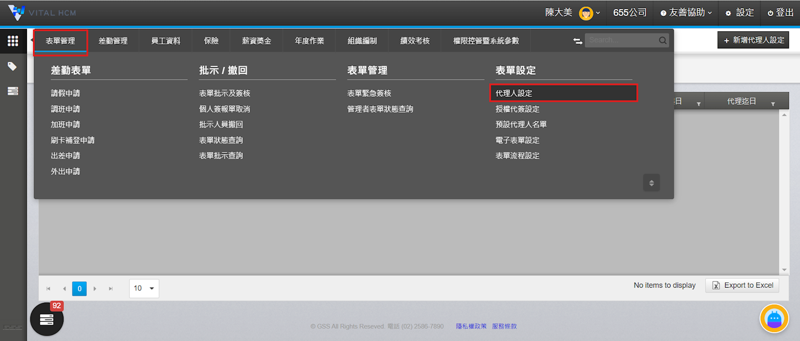 1. 請至全站功能的【表單管理】>【表單設定>代理人設定】。
