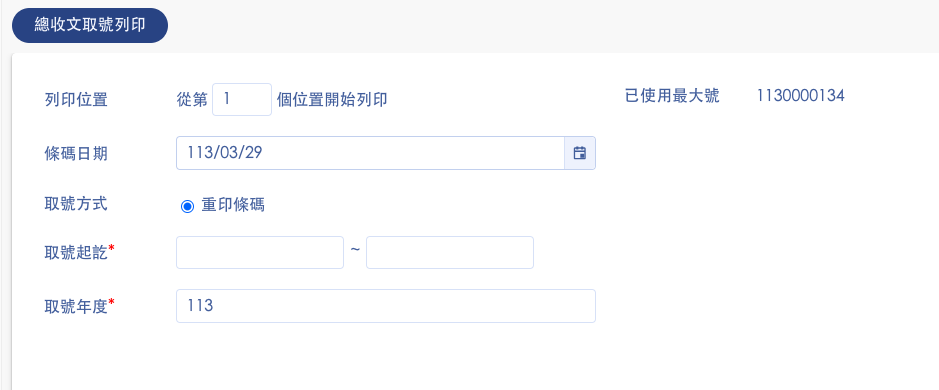 用途:紙本公文想要貼條碼的時候,讓紙本公文重印條碼