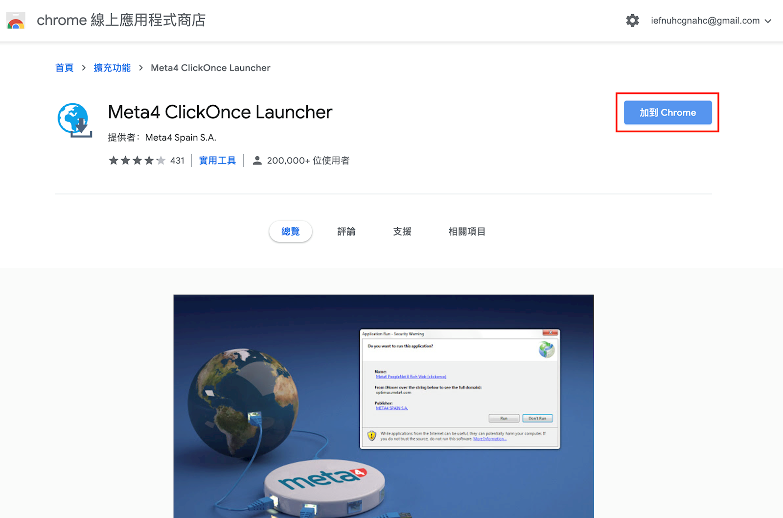 若使用 Chrome 登入雲端公文系統,請先安裝「Meta4 ClickOnce Launcher」
