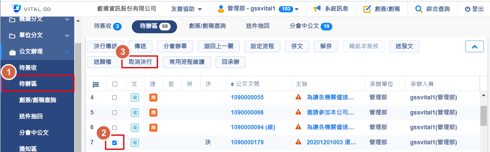1. 將公文退回承辦人,請承辦人取消決行。 *如何取消決行?點我看詳細操作 2. 如為創簽稿,請承辦人至【創簽/創稿查詢】中查找公文後銷案,點我看詳細操作 如為來文,請收文人員至【收文查詢】查找公文後銷案,點我看詳細操作
