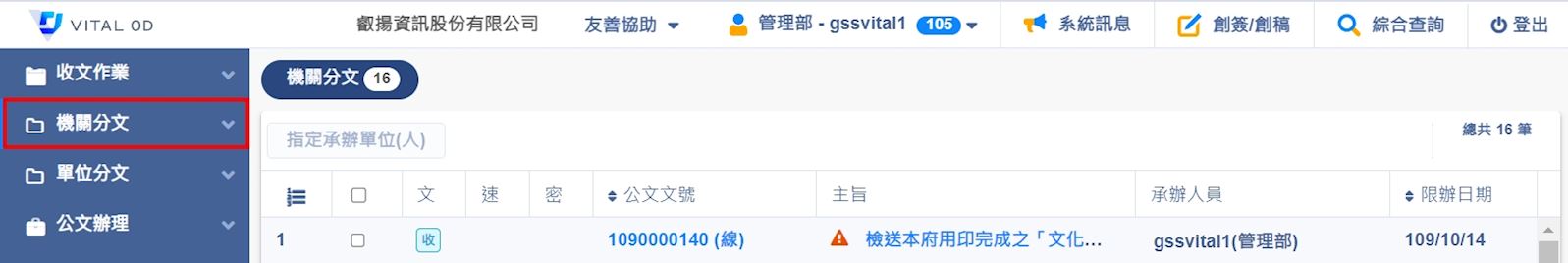 有機關分文角色的人功能樹會出現該作業,可進行分文。