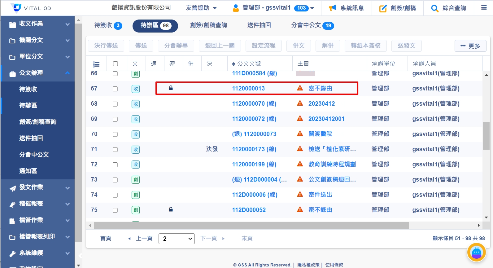 不會,密件來文在收文登錄時仍需要填寫主旨,因其為必填欄位,但是到待辦區時,即會顯示密不錄由。