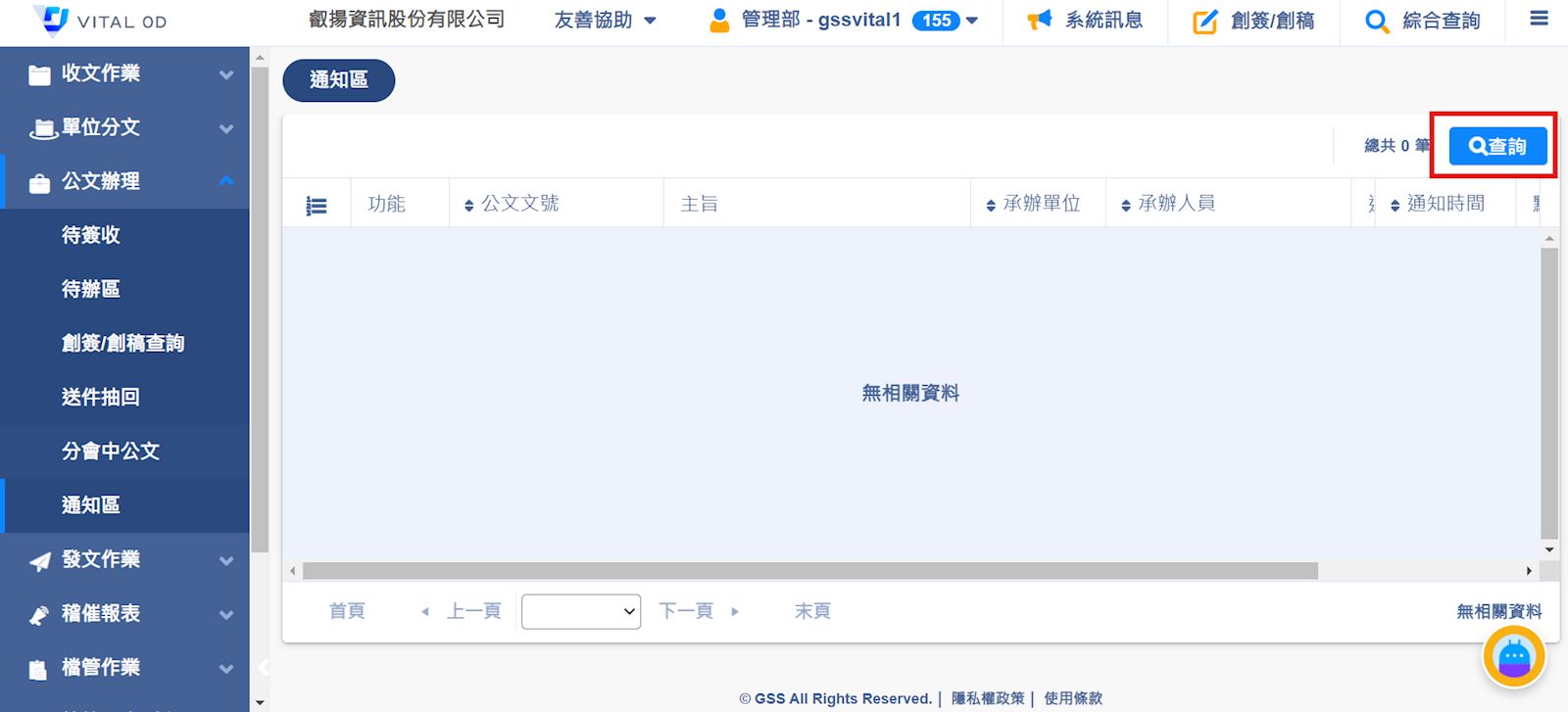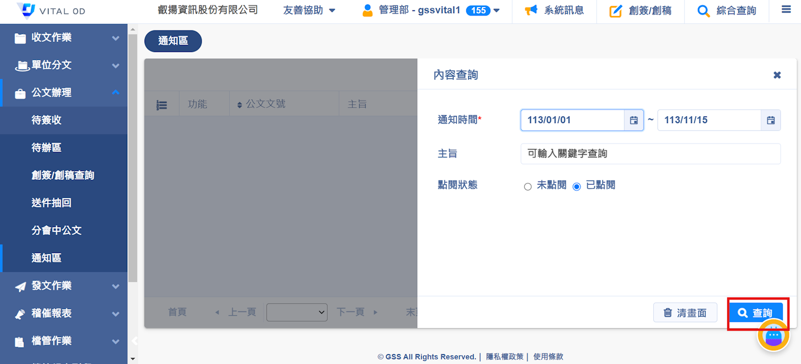 輸入搜尋條件並選擇是否已點閱後,按【查詢】
