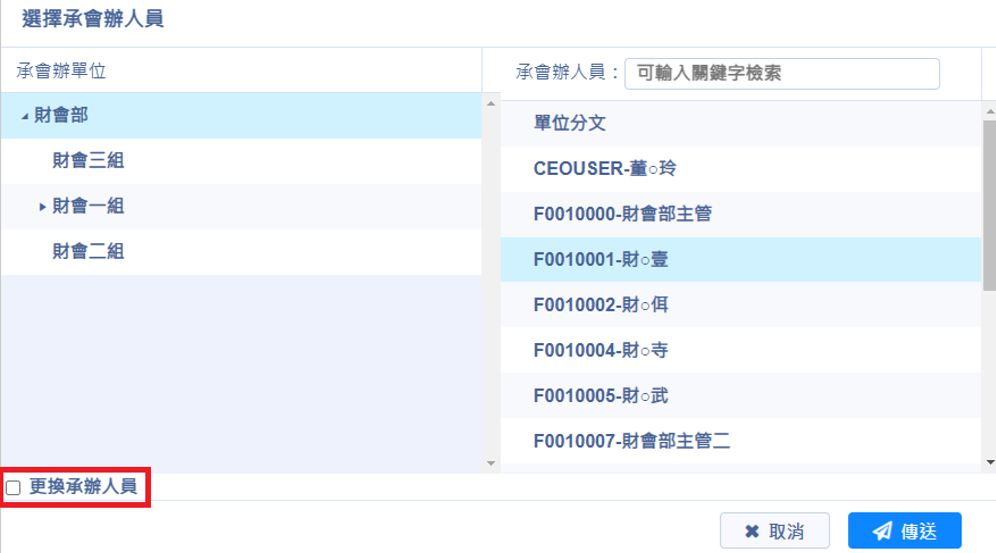 傳送公文後,也確認承辦人員沒有被異動