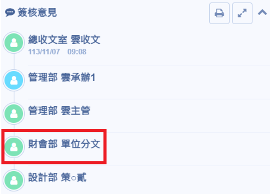 財會部的單位分文人員角色,可查看到該筆公文