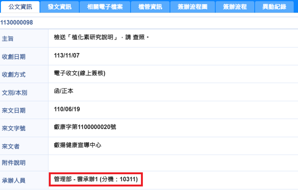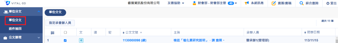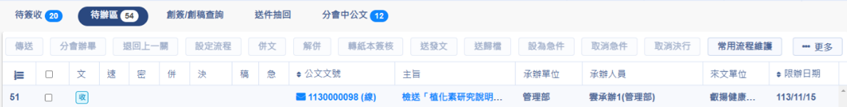被指定的會辦人員,可查看到該筆公文
