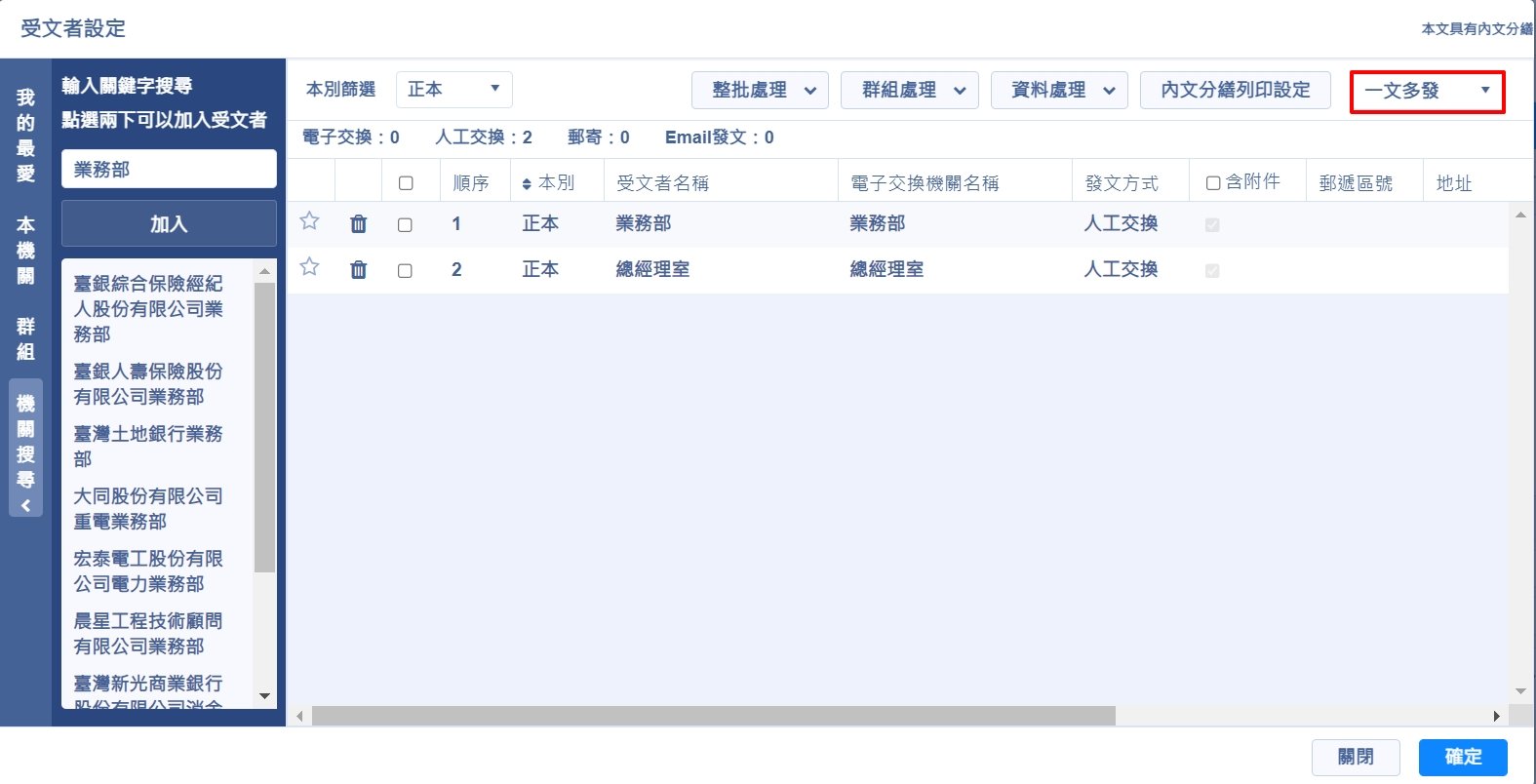 一文多發 : 當有多個受文者,所有受文者都會顯示