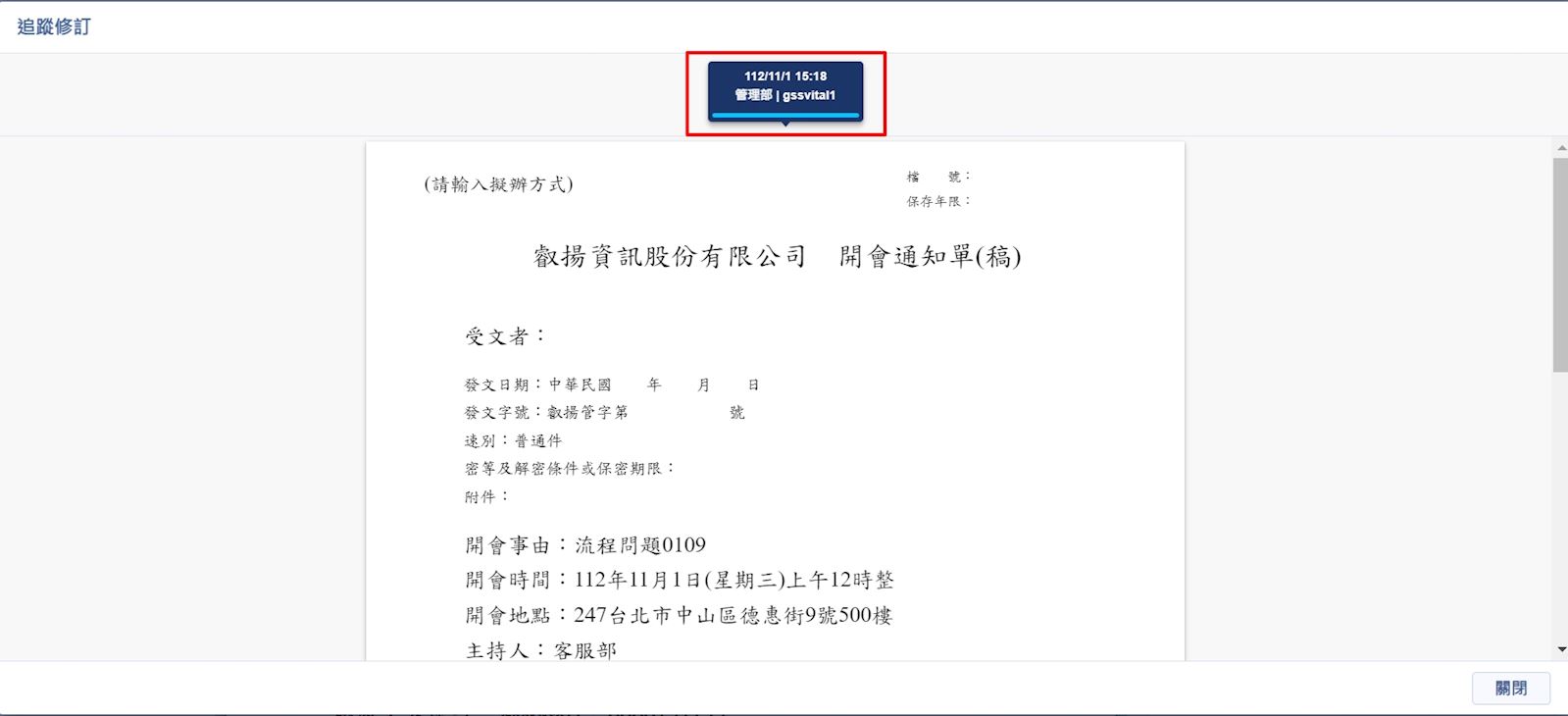 *追蹤修訂要有創簽稿的內容才會有每一關的紀錄才產生追蹤修訂。