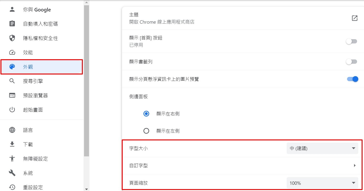 設定>外觀,即可修改字型大小