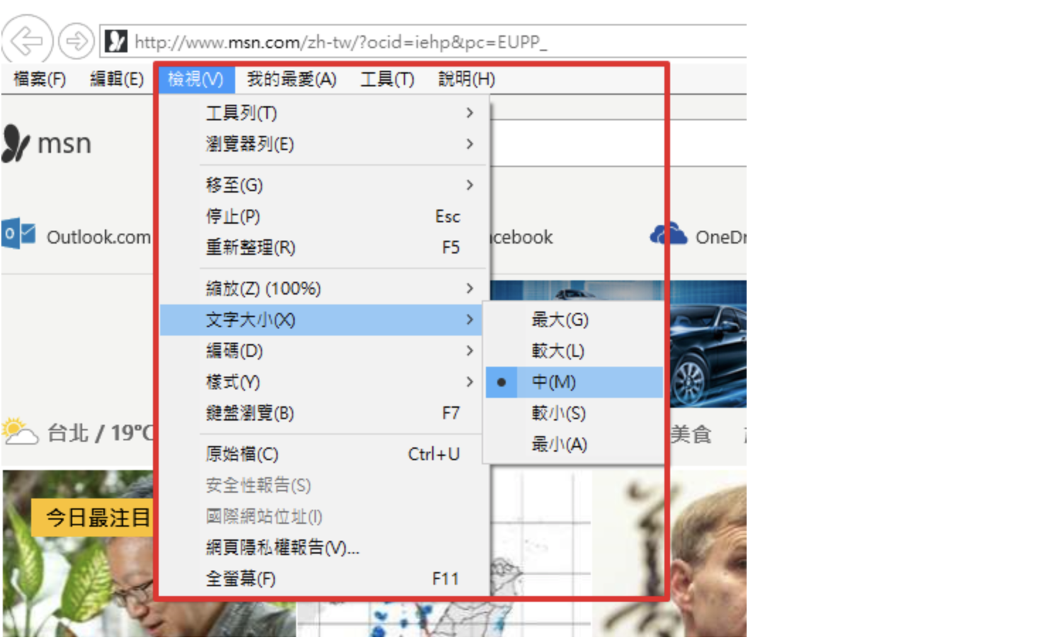 因為公文系統的字體是網頁顯示處理,所以網頁字體的大小會影響公文字體的大小,若需調整請參考下列步驟: