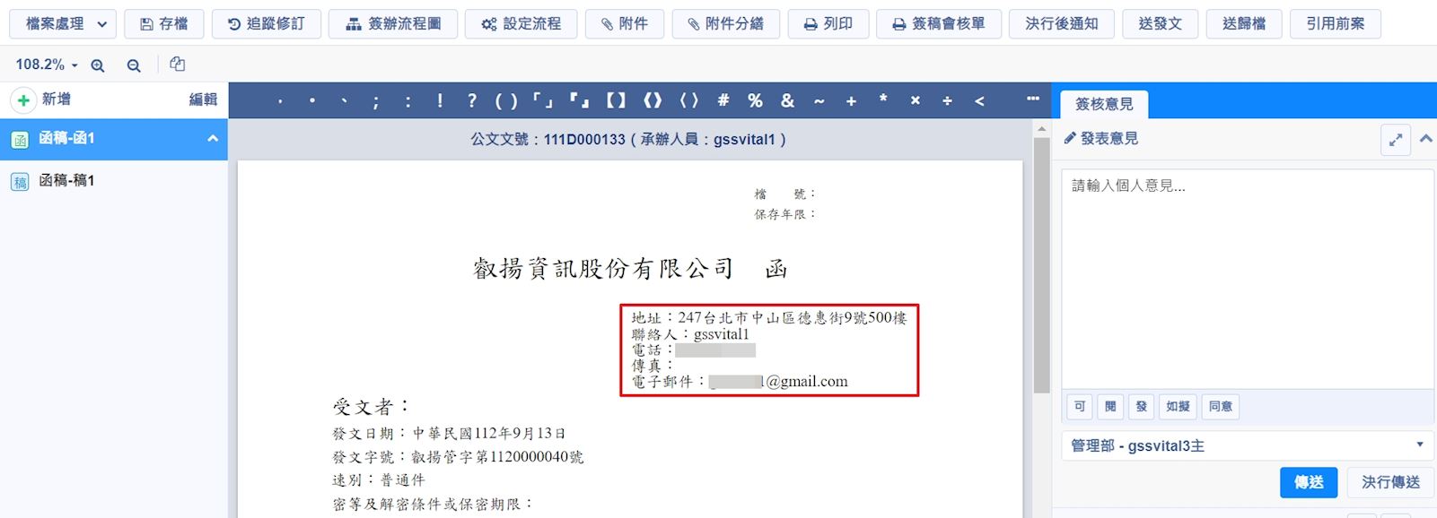 ※提醒:更改過後的資訊不會溯及既往,更改後新增的創簽稿才會出現新資訊,之前的文需要直接在函稿上面修正