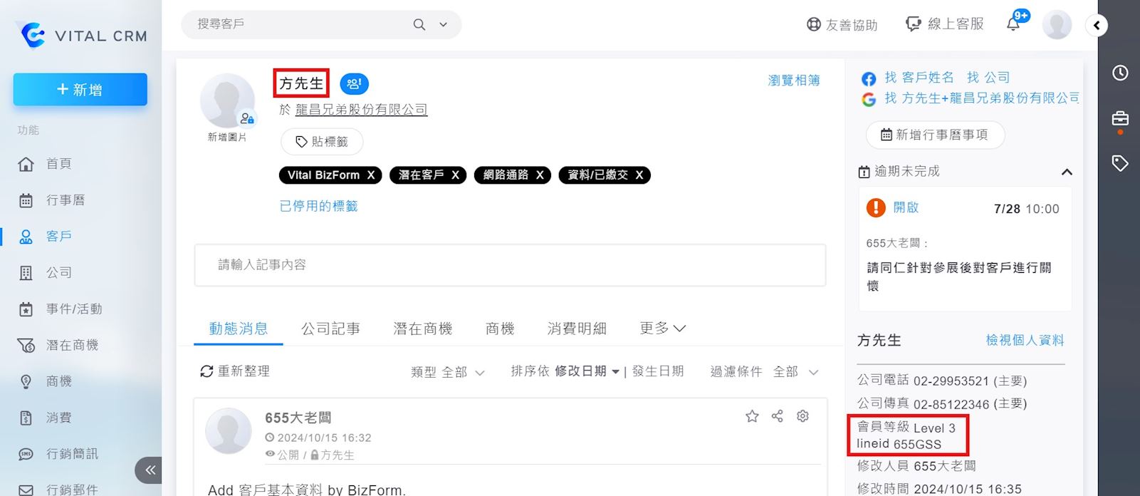 【CRM 擴充欄位】顯示表單中填寫的會員等級、line ID