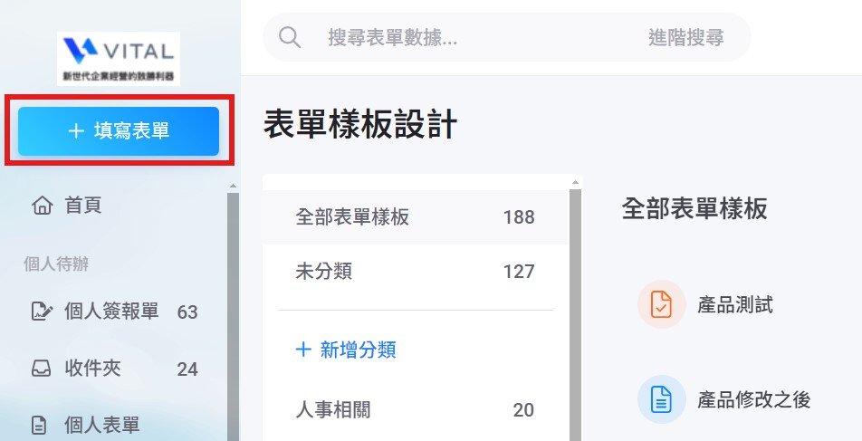 回到首頁,點選左上角【填寫表單】並選擇先前完成設計的表單。