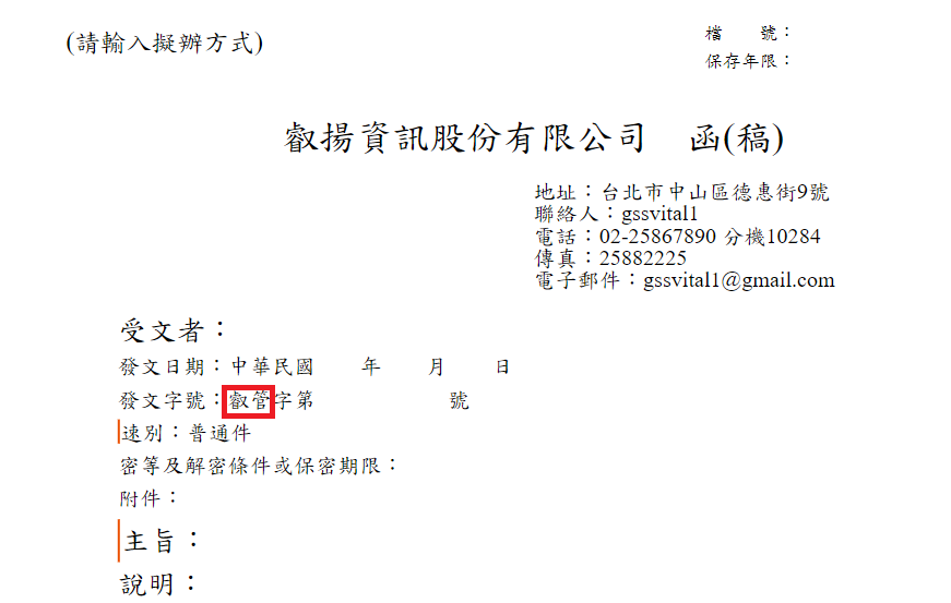 3.再重新創簽創稿,就會帶出修改後的發文代字