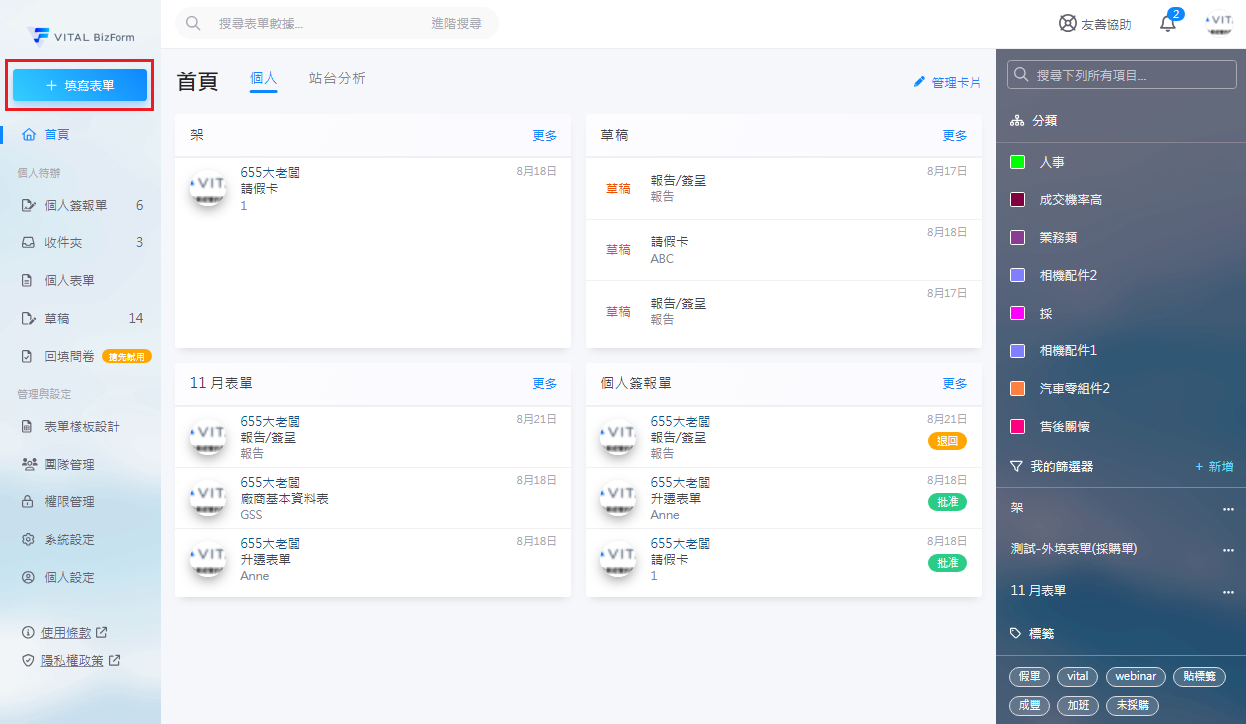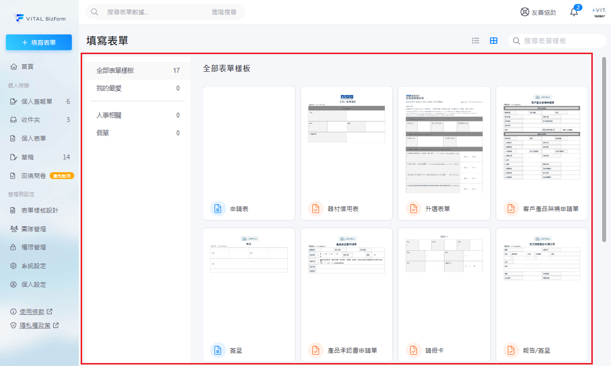 2. 選擇您想填寫的表單類型後即可填寫表單。