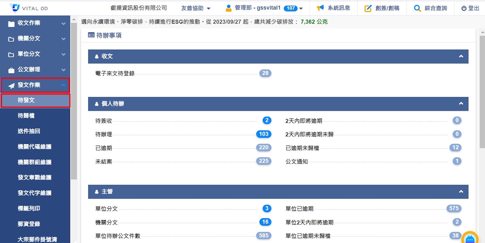 第一,請點選公文畫面左方的【公文辦理>待發文】