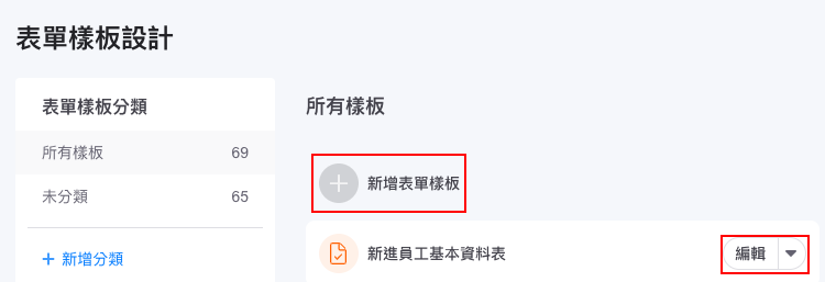 2. 接著,請在「所有樣板」中選擇一個既有的樣板進行編輯,或點選「新增表單樣板」建立新的表單