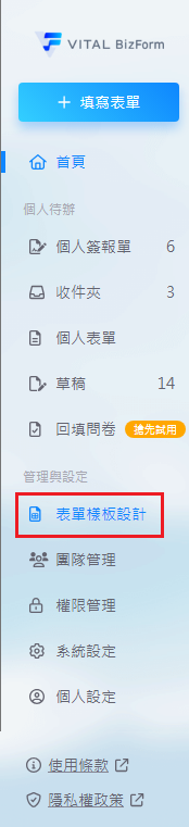 1. 請至左方功能列表中,點選「表單樣板設計」