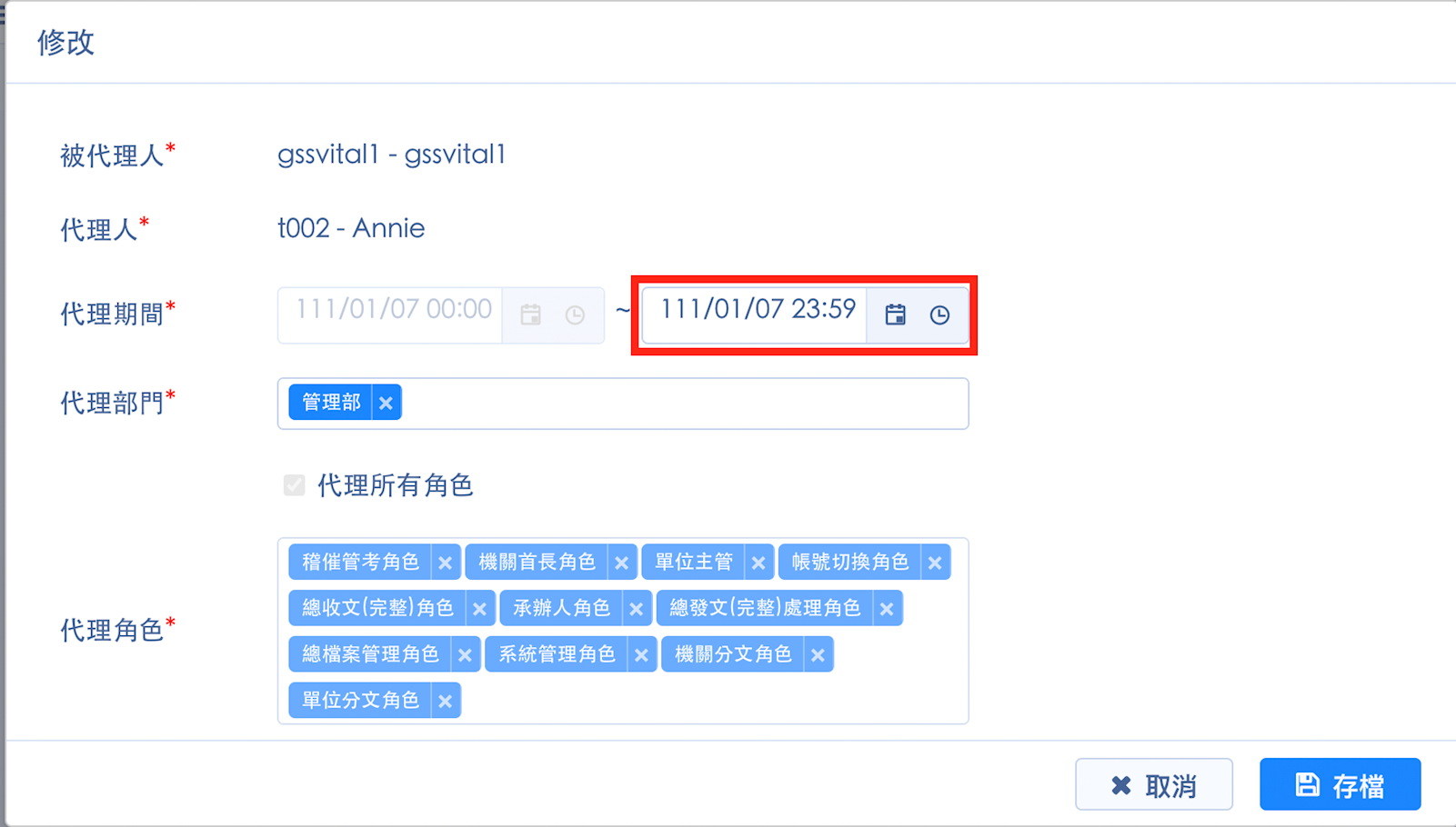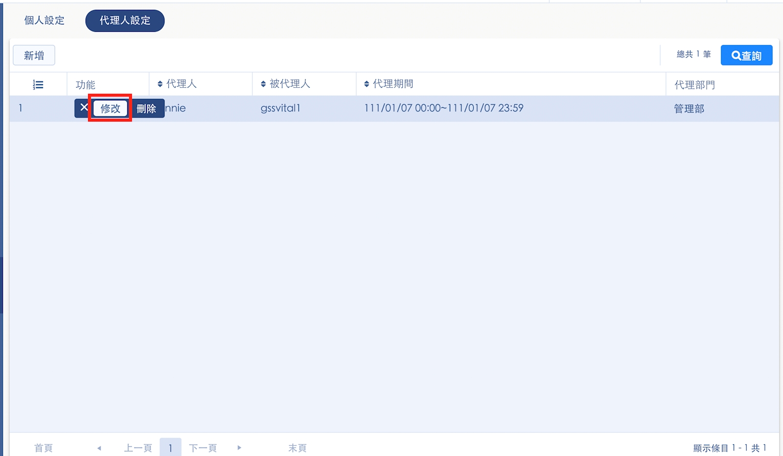 由於已進入代理期間,就視同開始代理,需要留下代理紀錄。若需要提早結束代理,請您點擊【修改】,將代理時間往前移即可。