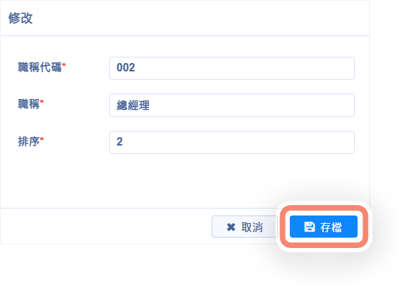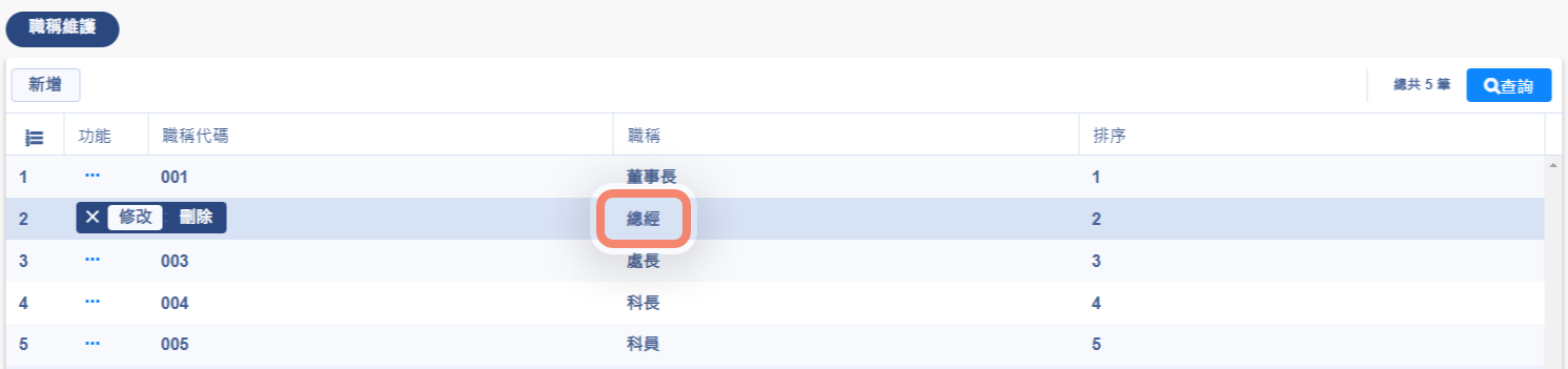 請至「系統維護」的「職稱維護」新增/編輯職稱。