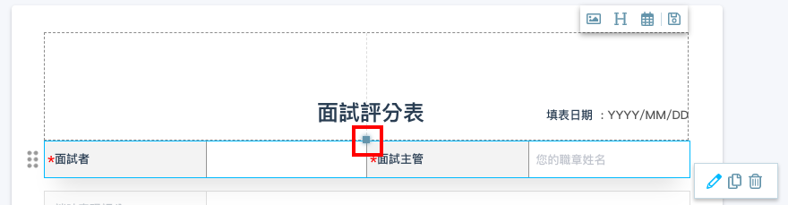 在表單樣板設計的畫面中,點選表首,在編輯狀態下點選下圖紅框中的錨點,可以上下調整高度。