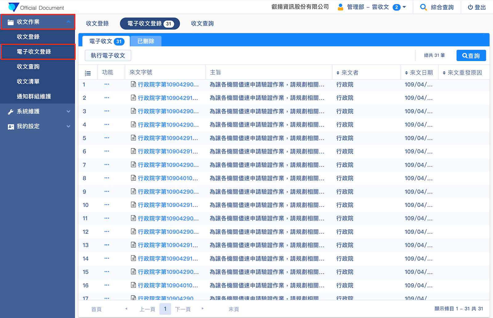 *如果您的電子收發文異常,請參考此FAQ : 電子收發文異常該如何處理?