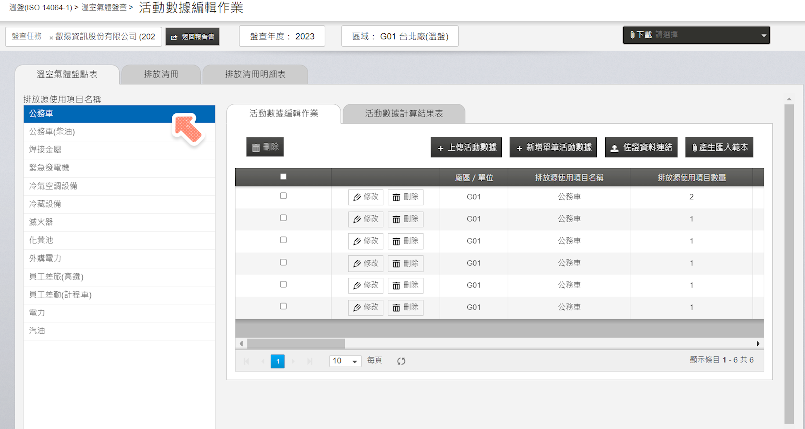 【活動數編輯作業】點選核取框 ,全選所有活動數據,接著點選【刪除】批次刪除活動數據。