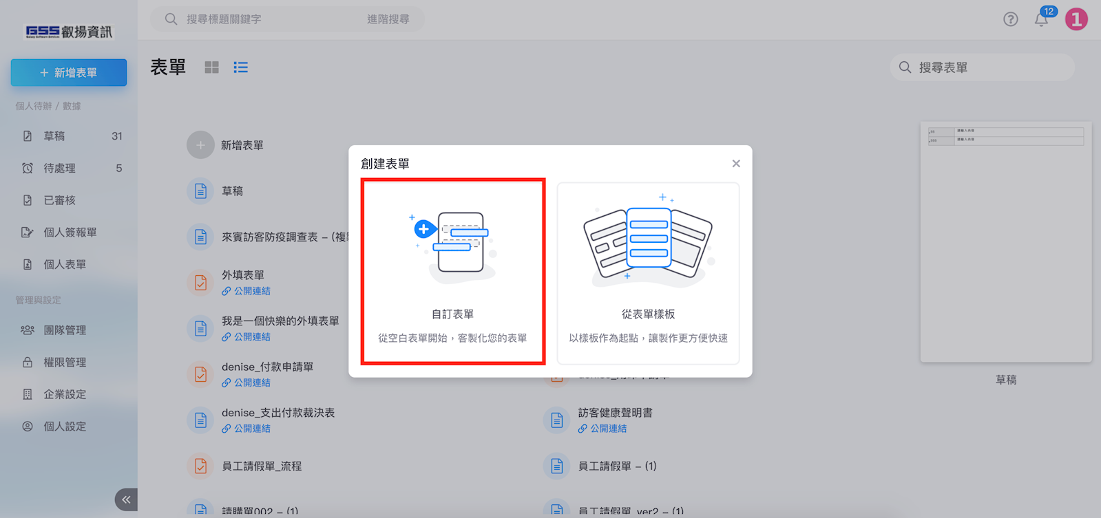 進入編輯畫面設定完格式後,在畫面上方點選【簽核流程】