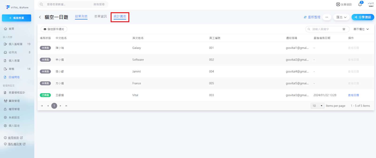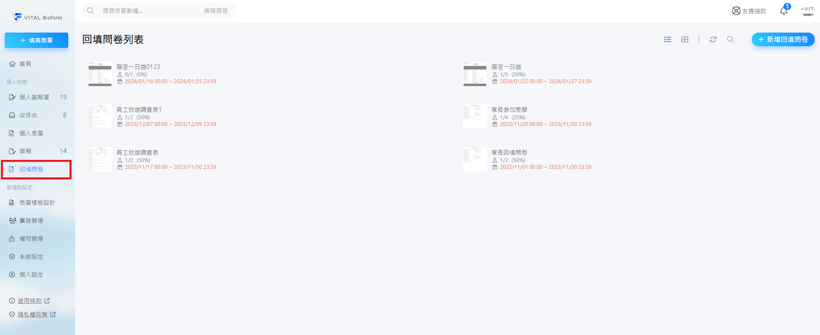 請點選到【回填問卷】功能,進入到回填問卷列表,點選您要查看的回填問卷,