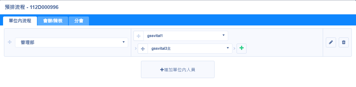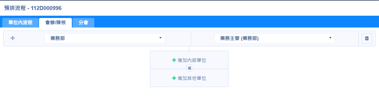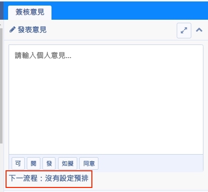 因為會辦其他單位,必須在「單位內流程」設定單位主管,否則將會顯示「沒有設定預排流程」,請前往設定流程,設定單位內主管即可將公文送出。