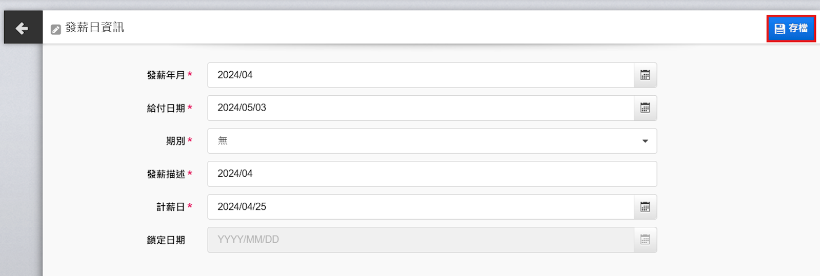 3. 編輯資料後按【存檔】即完成。(可在此調整薪資給付日期、計薪日等)