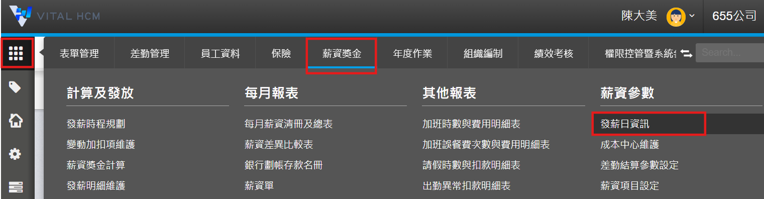 1. 請至【全站功能】>【薪資獎金>發薪日資訊】。