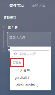3. 使用者在填寫表單時即可在流程關卡中選擇該組織或是該組織的人員。