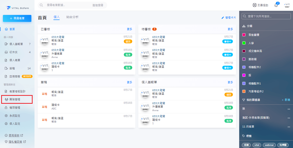 1. 首先,請至左方功能列表中點選「團隊管理」,開始新增您的組織。