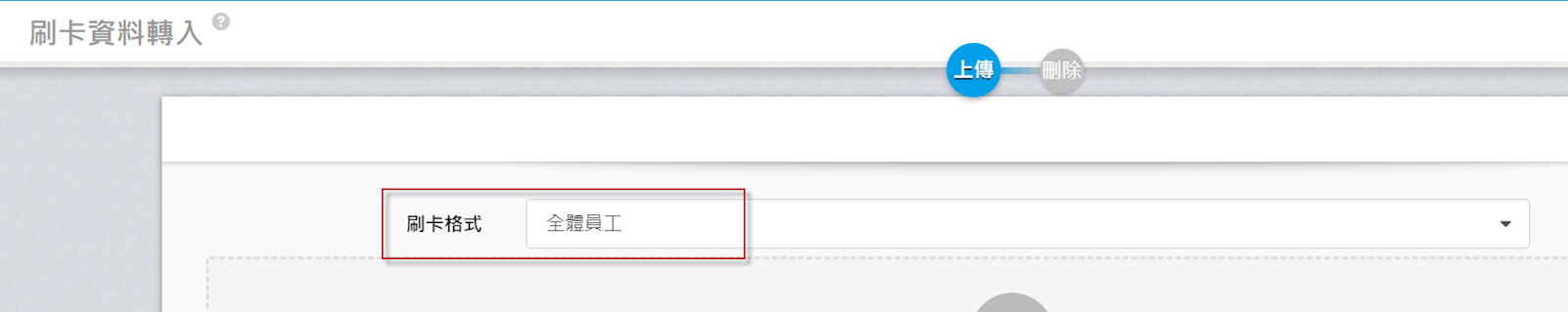 2. 選擇【刷卡格式】後,上傳依 [ 刷卡格式設定 ] 將員工的刷卡日期時間轉入系統。