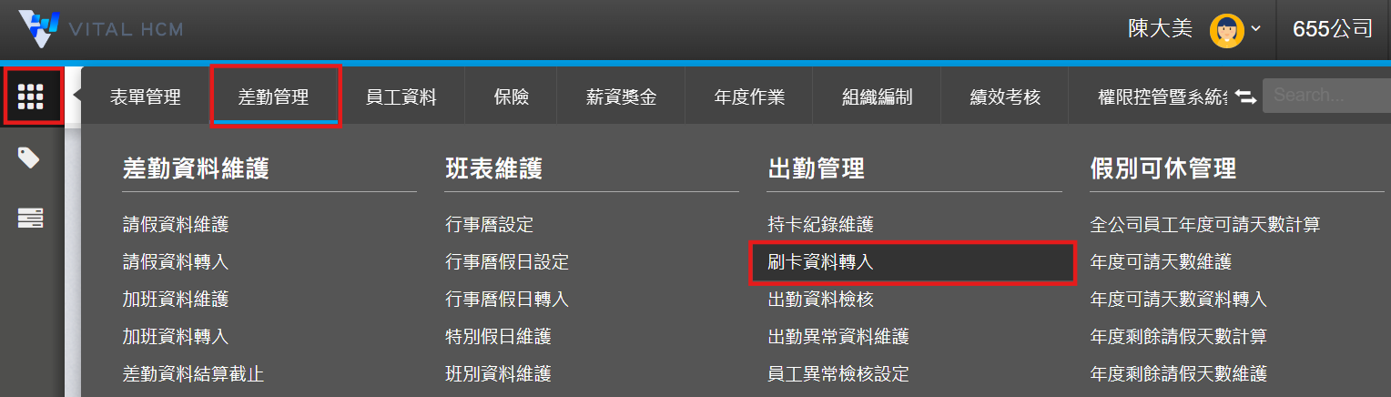1. 以上前置作業完成後, 請至【差勤管理】>【刷卡資料轉入】