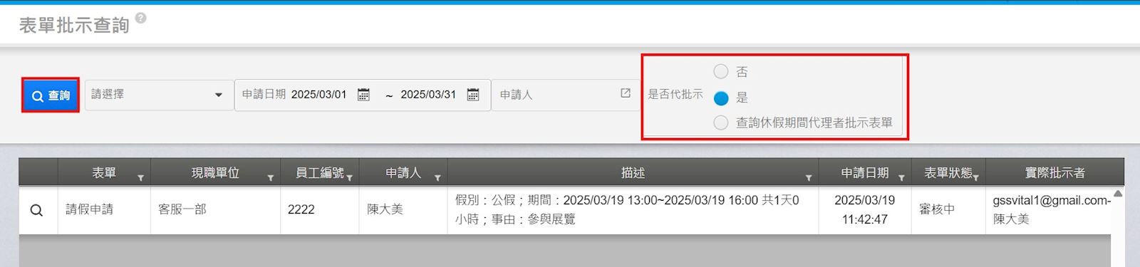 查詢休假期間代理者批示表單-別人協助代簽核我的表單