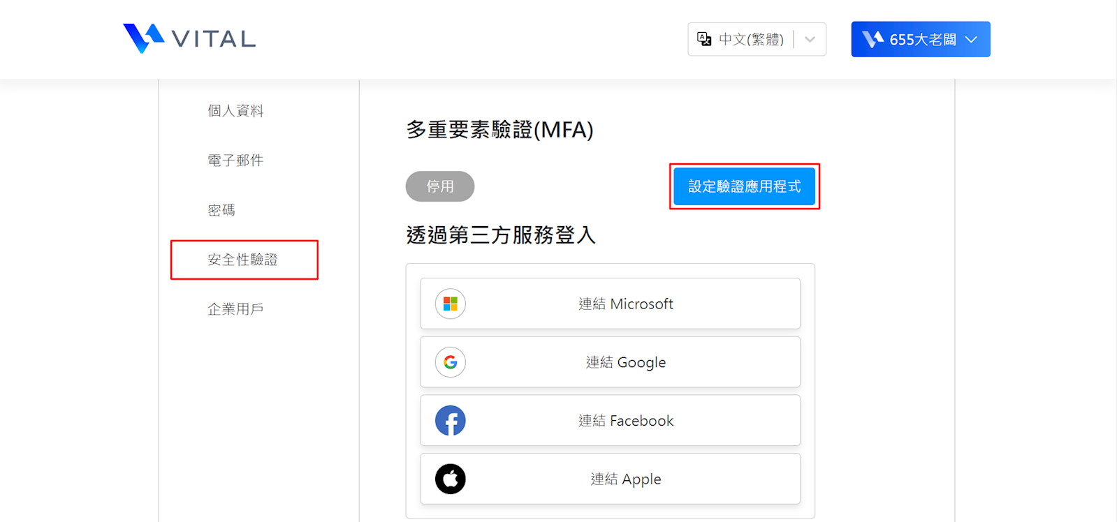 進入後請點選[安全性驗證]中的[設定驗證應用程式]。