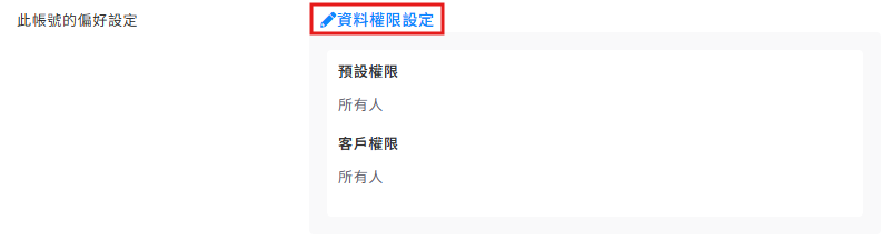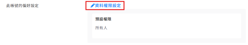 3. 在此帳號的偏好設定點選【資料權限設定】進入編輯。