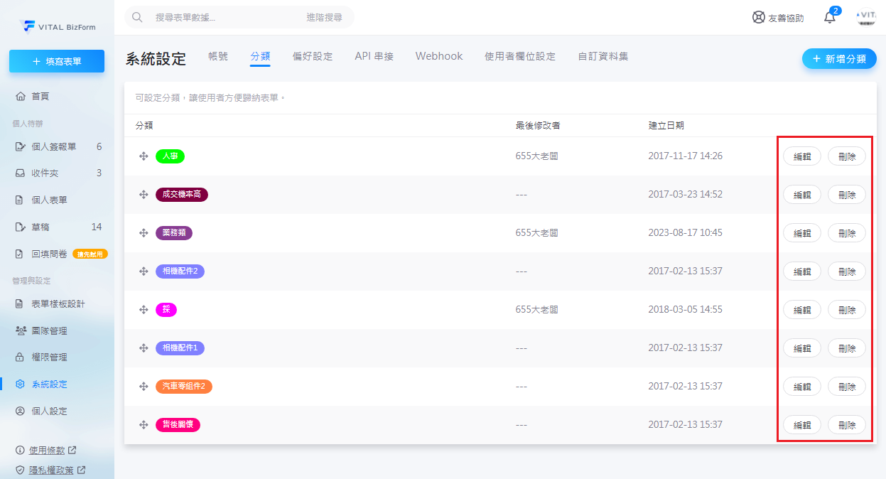 點擊【系統設定>分類】,右上角有「新增分類」按鈕。