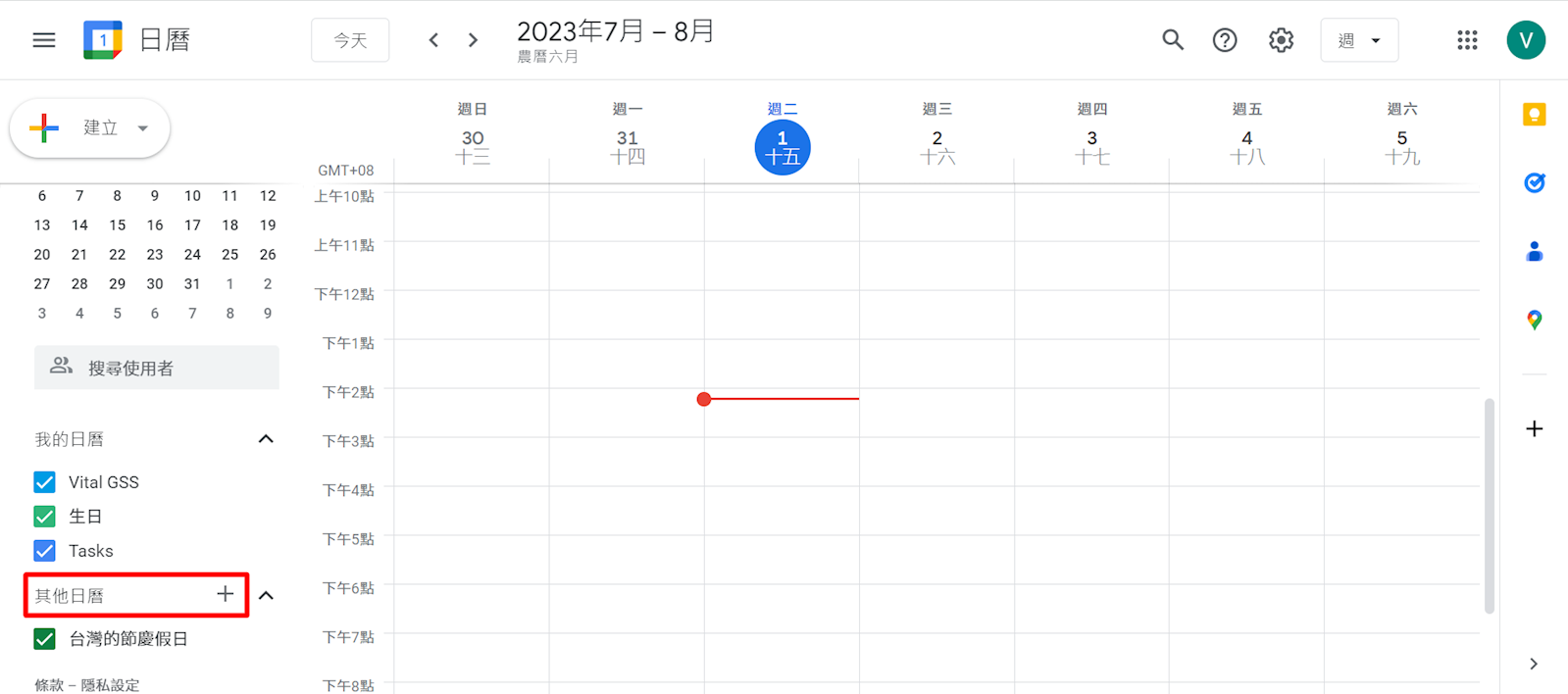 2. 於【其他日曆】點選旁邊的加號按鈕。