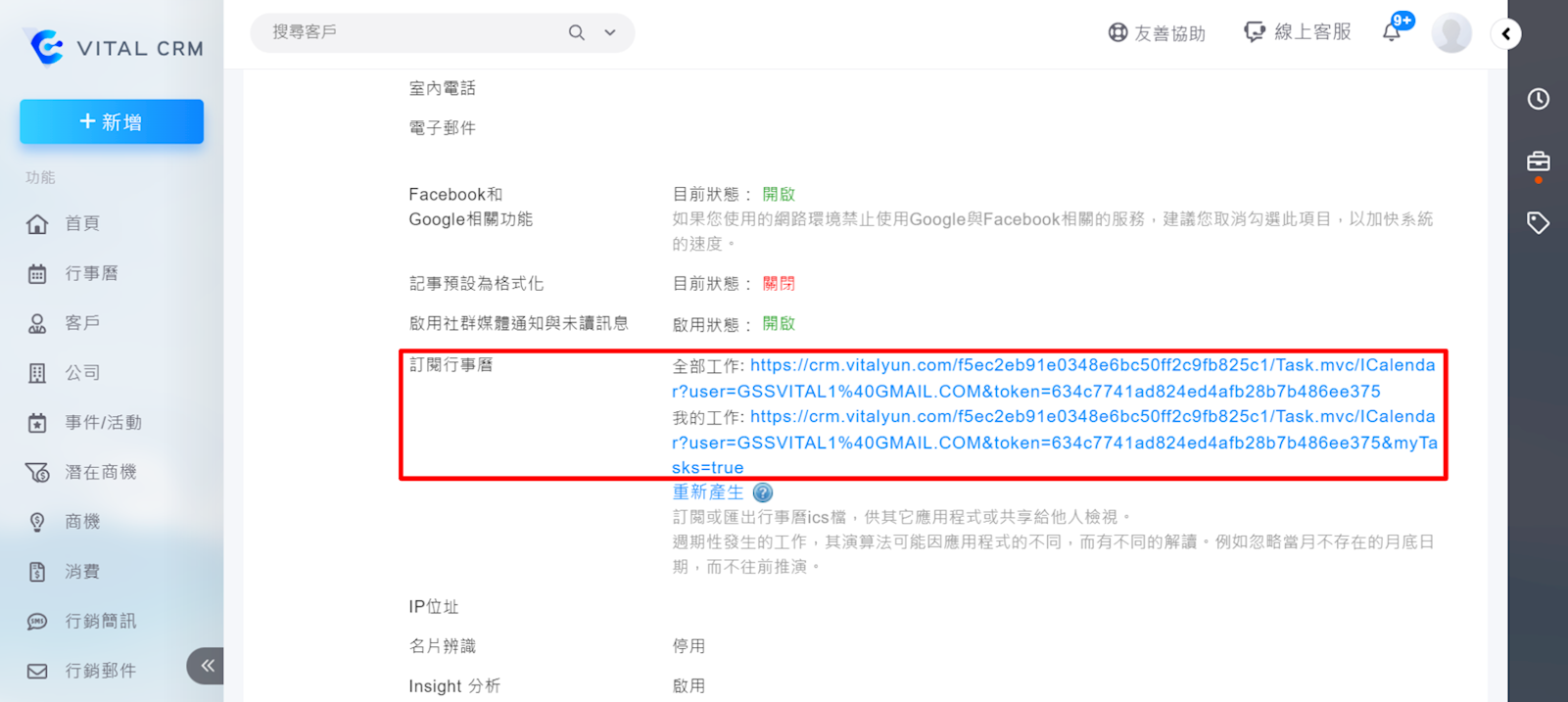 2. 僅Vitla CRM串聯同步Google日曆中,目前不支援Google日曆匯入Vital CRM。
