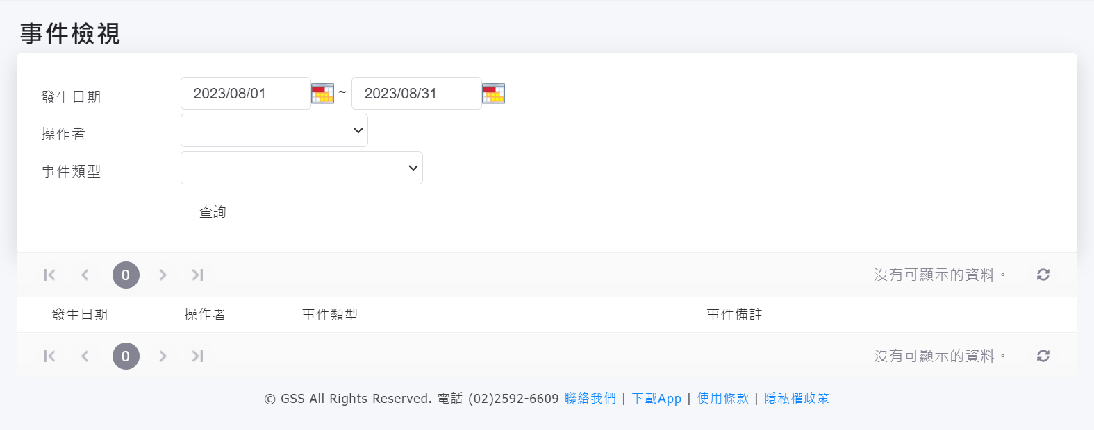 請至首頁左下方【管理>系統>事件檢視】,就可以輸入條件查詢。