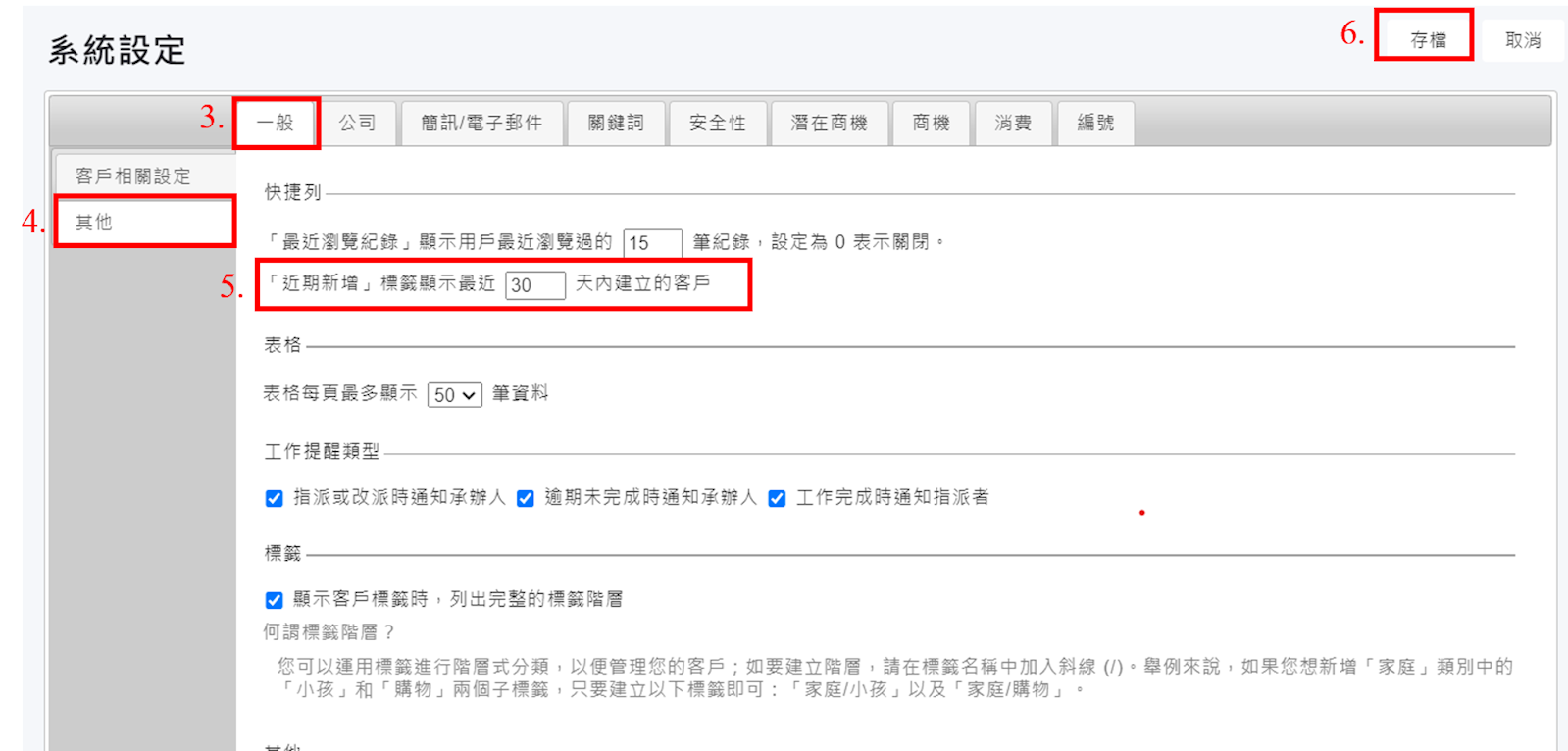 2.點選一般>其他>修改近期新增的天數>存檔,近期新增的標籤會依照修改的天數進行篩選