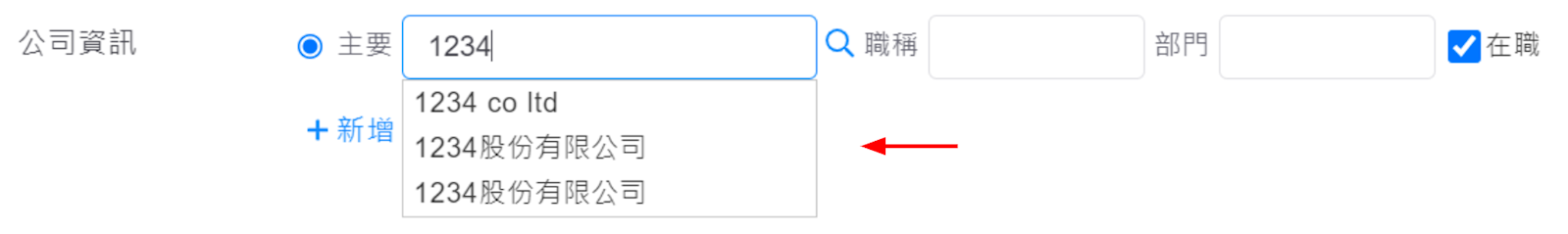 若您尚未在系統中建立該公司,您可以直接在輸入框中輸入完整的公司名稱。