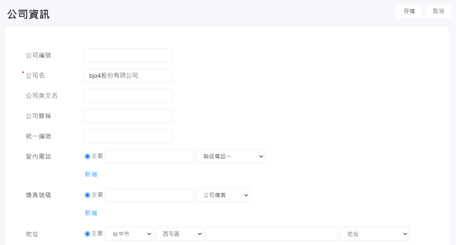 您可以在此輸入公司的完整資訊,如電話、地址、統一編號...。