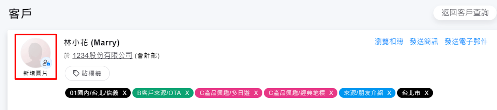 2.點選欲修改大頭貼的客戶,進入頁面後點選大頭貼,即可以進行修改。