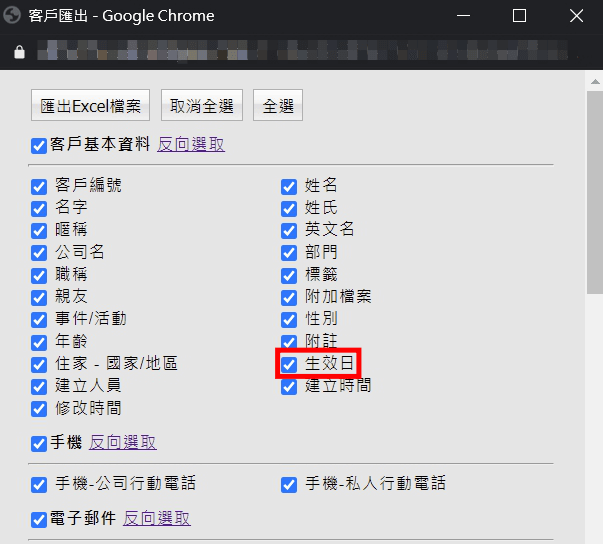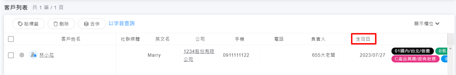 4. 於客戶列表畫面,可顯示的欄位加入了【生效日】。