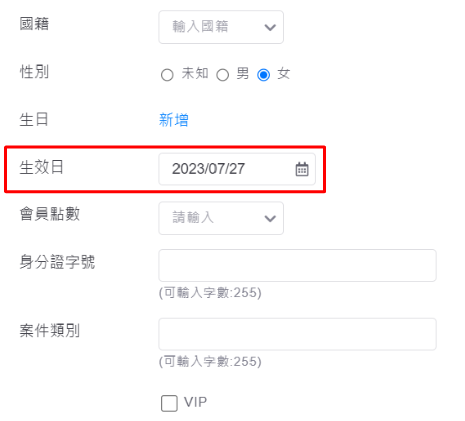 1. 使用者編輯客戶資料時,可以一併指定生效日。